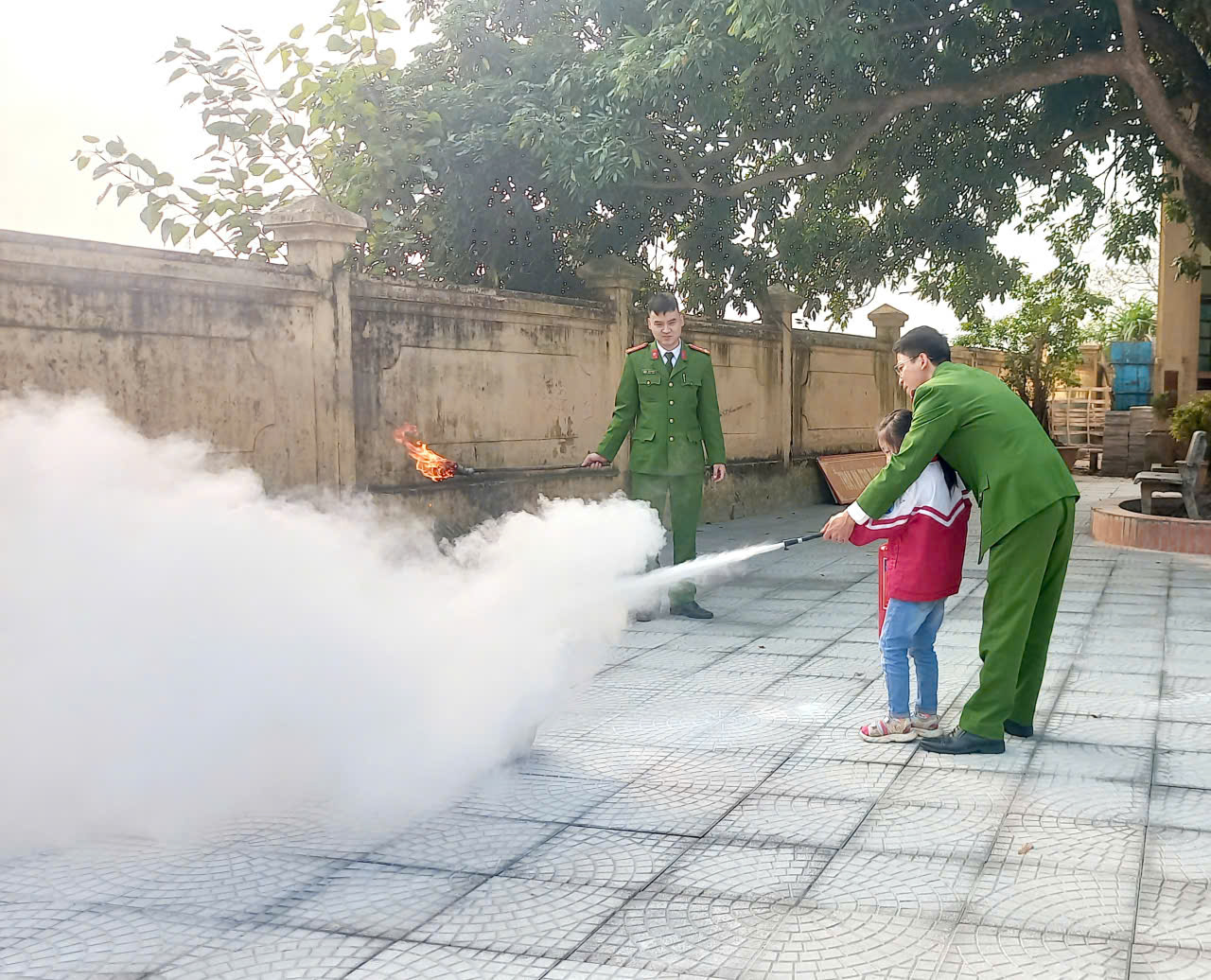 Học sinh được giới thiệu các nguyên nhân gây cháy nổ thường gặp và cách phòng tránh trong gia đình, trường học; cách xử lý khi phát hiện cháy, kỹ năng thoát hiểm và những hành vi tuyệt đối không được thực hiện như nghịch lửa, tự ý sử dụng điện. Và khi được các chú công an hướng dẫn về cách xử lý khi có đám cháy, các em học sinh đã rất hào hứng, 1 số em đã mạnh dạn, tự tin xung phong lên thực hành khi có đám cháy xảy ra.