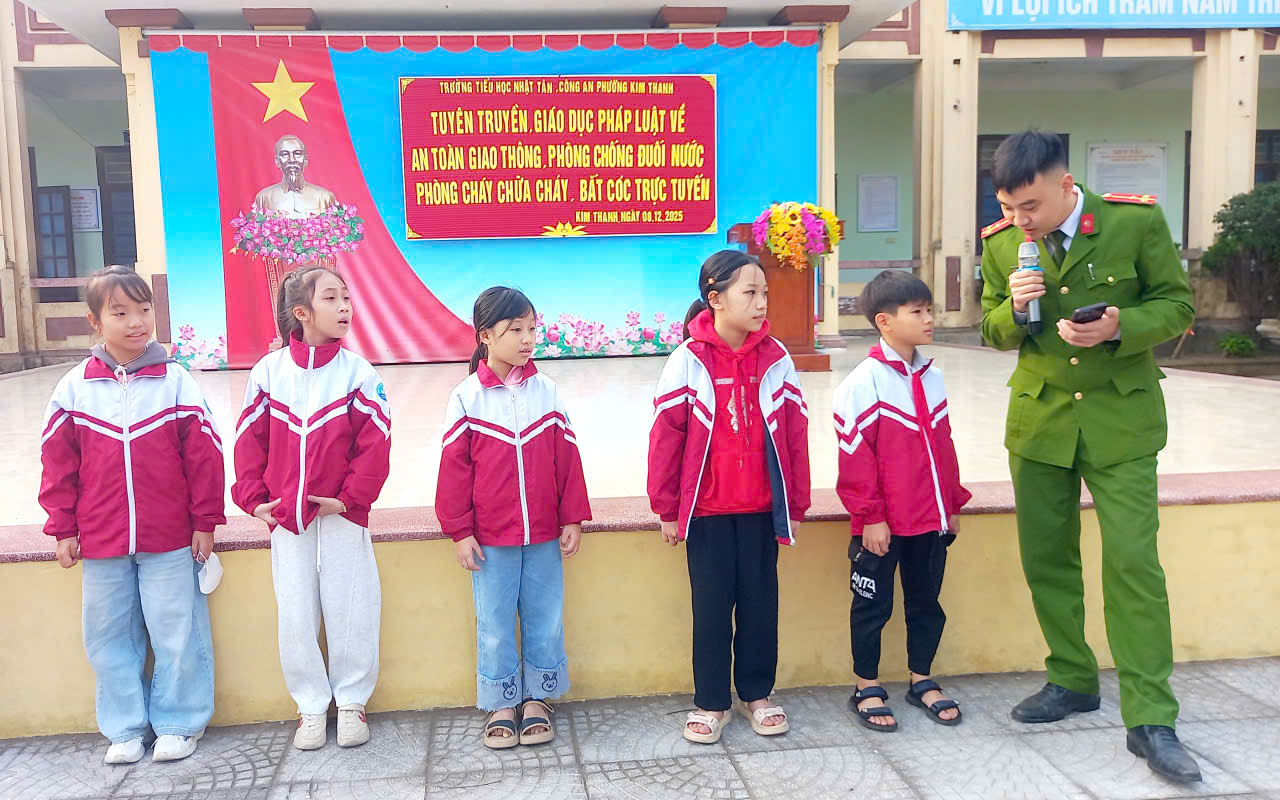 Công an phường Kim Thanh tuyên truyền các kỹ năng an toàn cho học sinh Tiểu học Nhật Tân