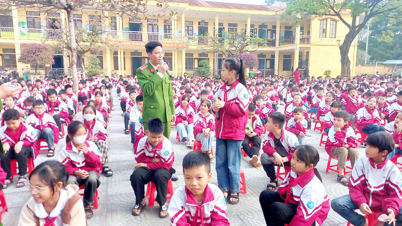 Buổi tuyên truyền diễn ra trong không khí vui tươi, sinh động với hình ảnh minh họa, câu hỏi – đáp nhanh và các tình huống thực tế giúp học sinh dễ hiểu, dễ nhớ. Nhiều em mạnh dạn phát biểu, nêu ý kiến và đặt câu hỏi cho các chú công an.