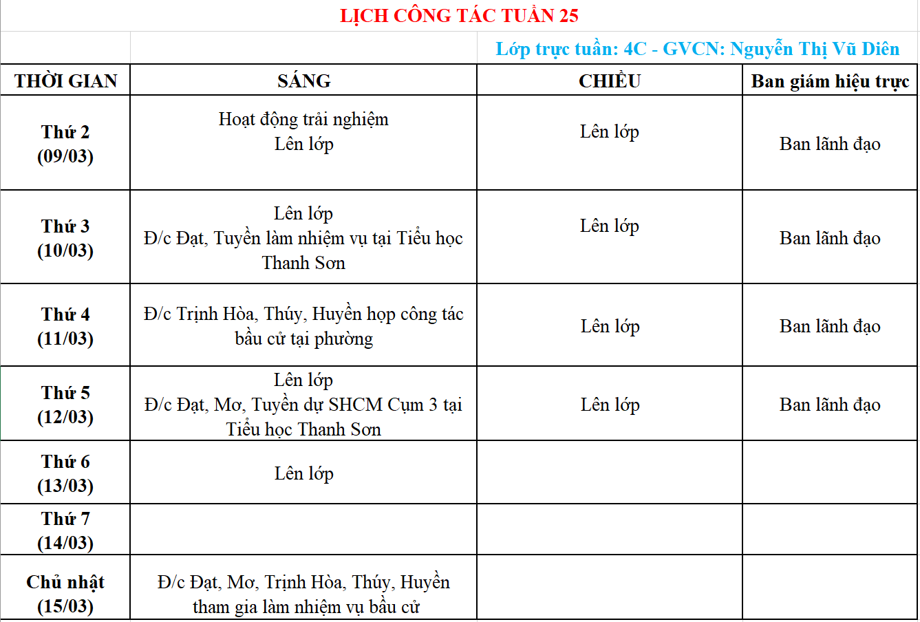 Lịch công tác tuần 25
