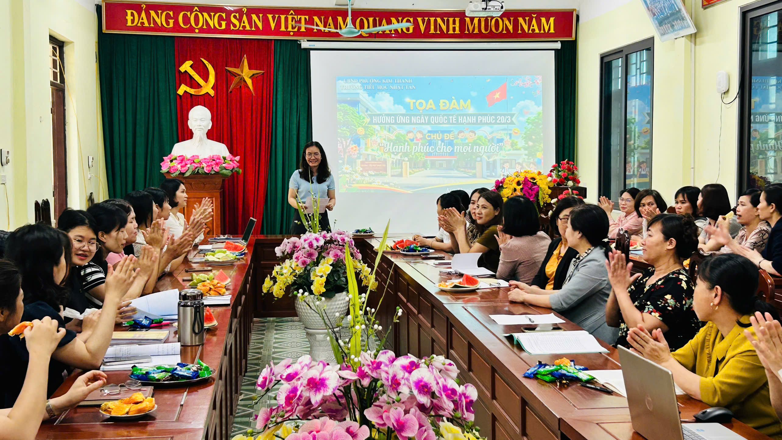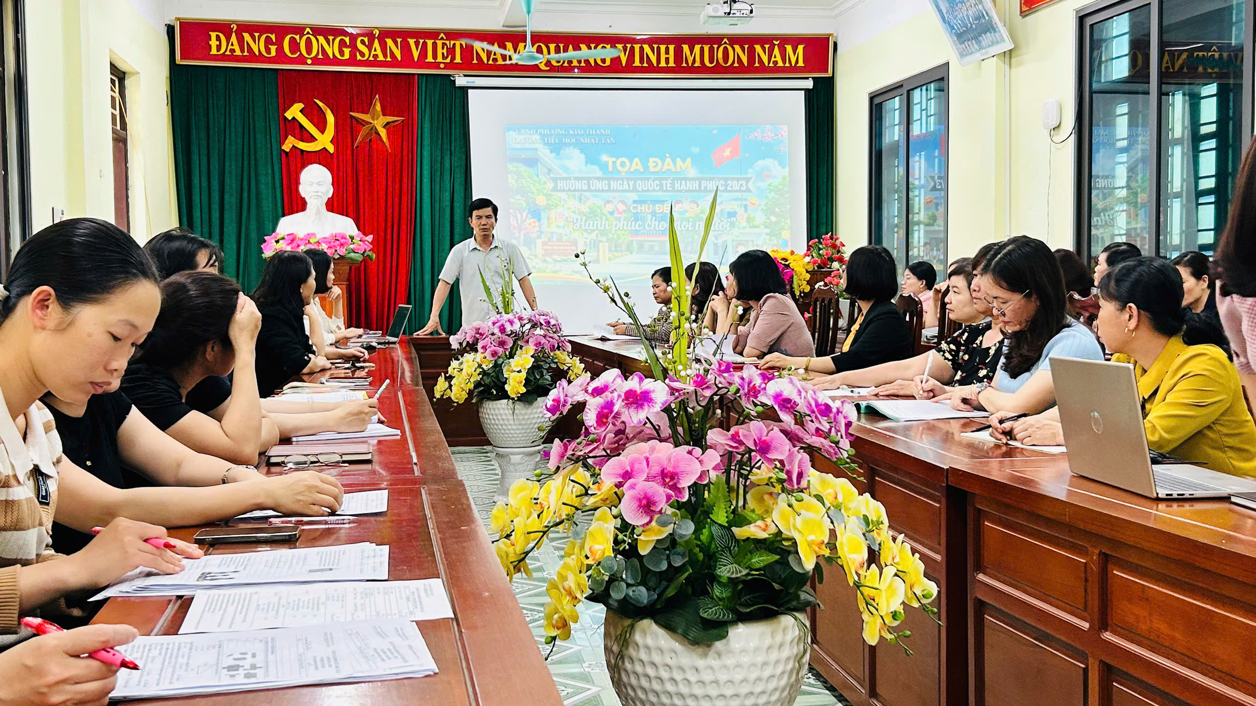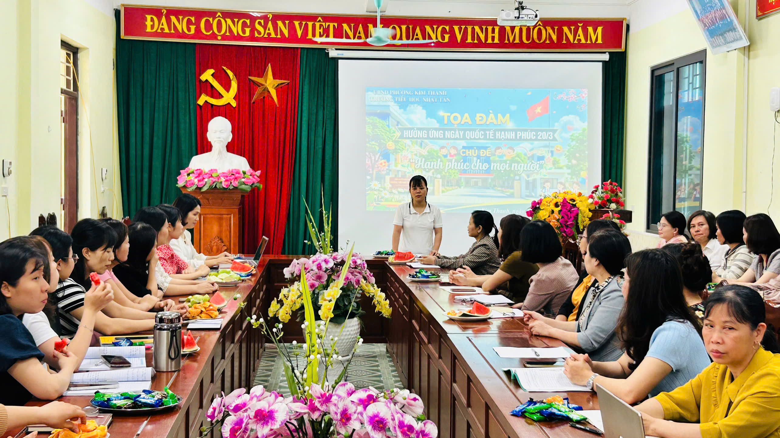 Thực hiện CV 475/SGDĐT-CTHSSV ngày 27 tháng 2 năm 2026 của Sở GDĐT phòng công tác HSSV V/v hưởng ứng Ngày thơ Việt Nam, trường Tiểu học Nhật Tân đã tổ chức buổi tọa đàm đặc biệt chào mừng Ngày Quốc tế Hạnh phúc 20/3. Với chủ đề “Hạnh phúc cho mọi người”, buổi lễ không chỉ tôn vinh những giá trị giáo dục mà còn là dịp để nhìn lại vai trò của gia đình – bến đỗ bình yên nhất của mỗi cá nhân.