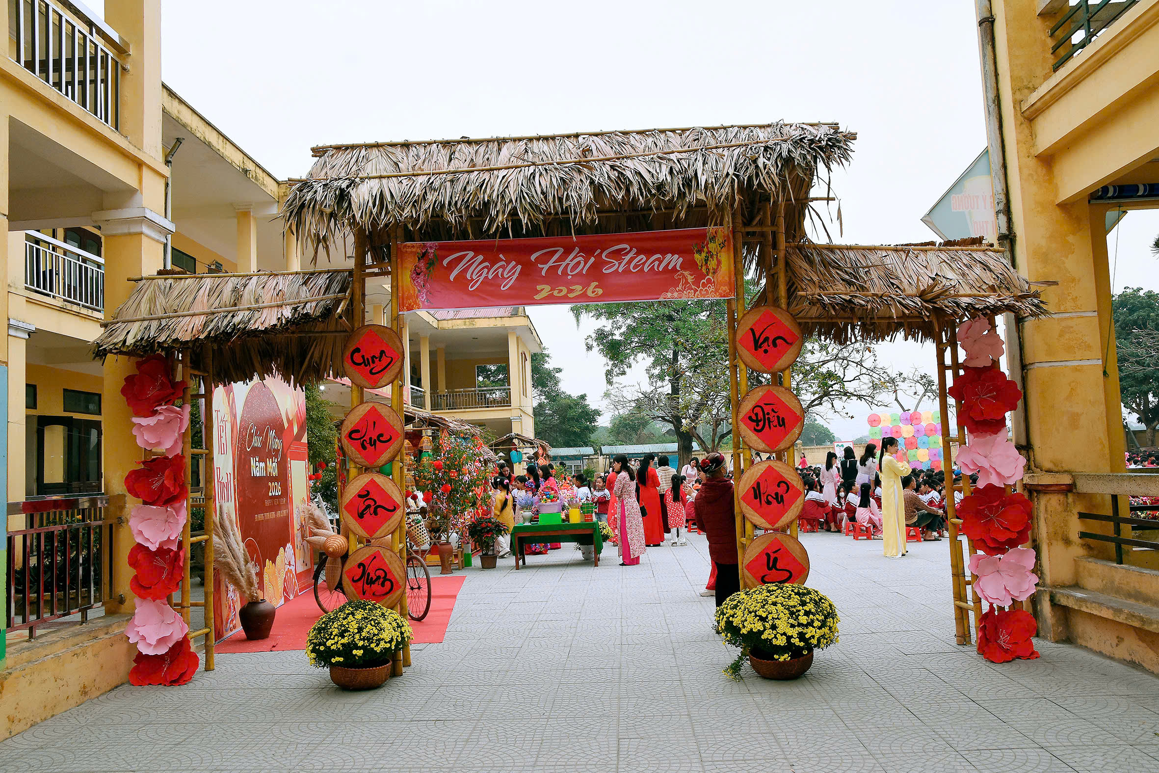 Sáng ngày 05/02/2026, trong không khí rộn ràng của những ngày đầu xuân năm mới, Trường Tiểu học Nhật Tân đã tổ chức thành công Ngày hội STEAM với chủ đề “Xuân yêu thương – Tết sum vầy”. Chương trình là sự kết hợp độc đáo giữa không gian văn hóa Tết cổ truyền và tư duy sáng tạo hiện đại, thu hút sự tham gia hào hứng của toàn thể cán bộ, giáo viên, phụ huynh và học sinh toàn trường.