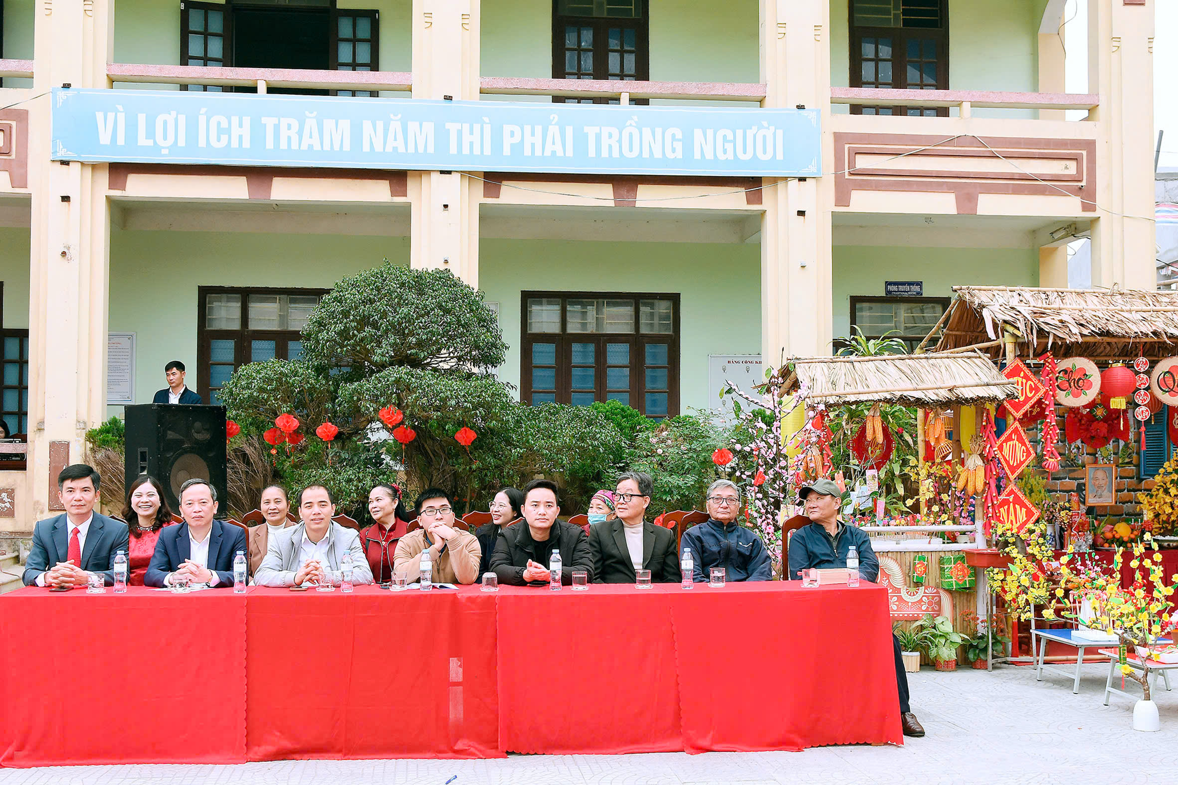 Ban lãnh đạo nhà trường cùng toàn thể các thầy cô giáo và hơn 1000 các học sinh trong nhà trường.