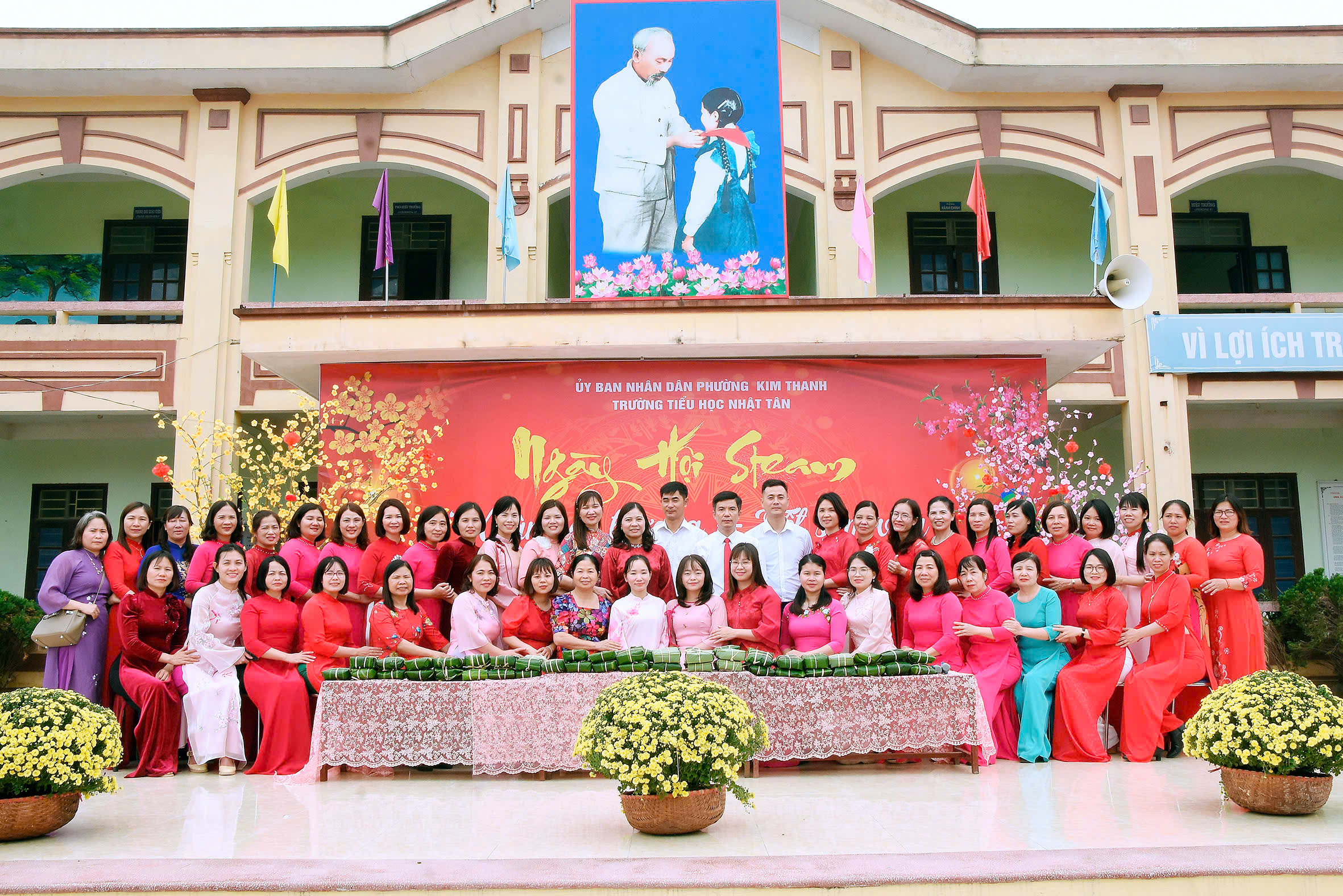 Tập thể cán bộ, giáo viên, nhân viên trường Tiểu học Nhật Tân chụp ảnh lưu niệm