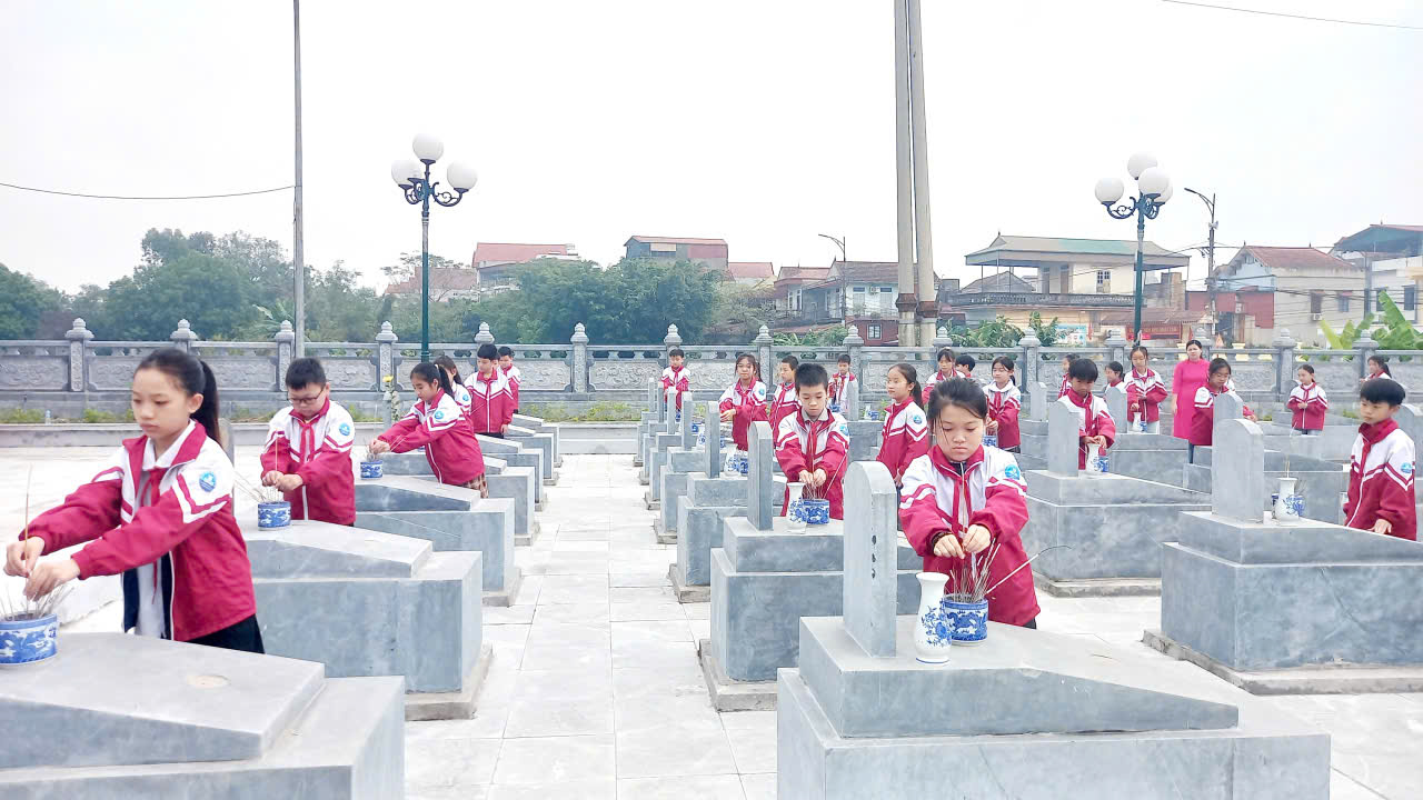 Video Thầy và trò Trường TH Nhật Tân viếng nghĩa trang liệt sĩ nhân ngày 22/12